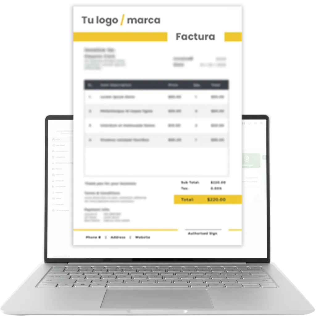 Profesionalismo en cada detalle. Tu factura es una extensión de tu marca. Incluimos plantillas personalizables sin costo adicional, y si necesitas un diseño específico con datos únicos o una identidad visual robusta, creamos el PDF exacto que tu empresa proyecta.